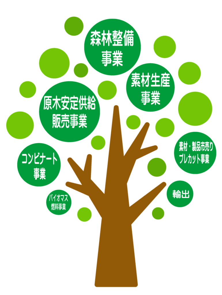 業務内容 | 木材の委託販売(市日:11日・28日) プレカット(CADによるプレカット受注) 商材販売(内装材・土木材・住器販売) 原木システム販売・素材生産・森林整備 |
